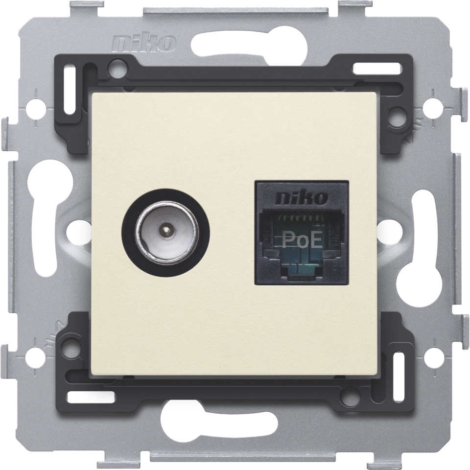 Niko combinatie coax en RJ45 UTP Cat 6 klaar voor PoE++ met schroefbevestiging en afwerkingsset cream (100-79238)