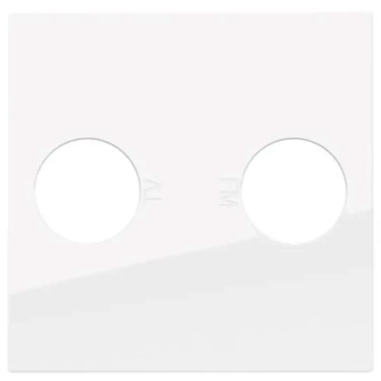 Centraalplaat met 2 enkelvoudige coaxaansluitingen. Beiden worden respectievelijk aangeduid met een TV en FM icoon. Afwerkingskleur: bright white hoogglans (in de massa gekleurd, bij benadering RAL9003). OP=OP... Meer informatie »