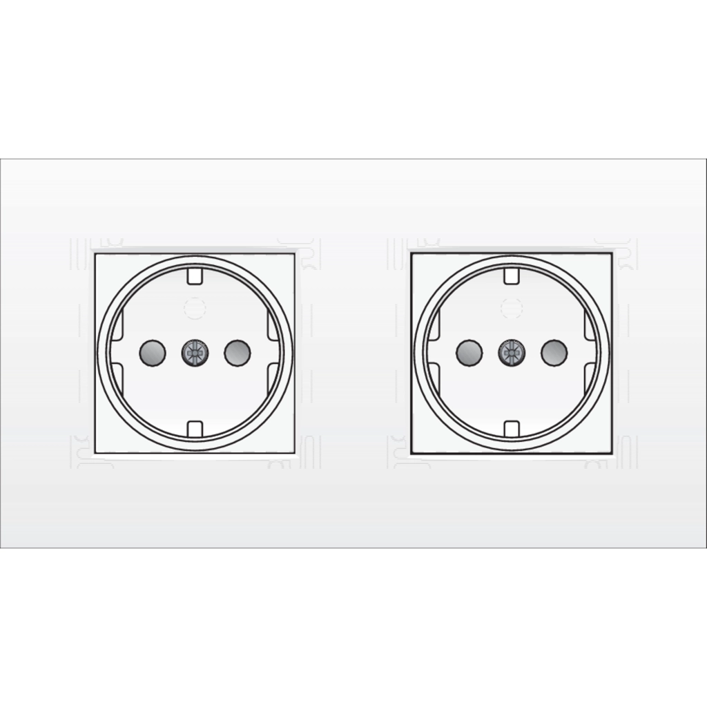 Samengesteld tweevoudige voorbedraad tweepolig inbouwstopcontact 16 A 250 V sokkel, centraalplaat en afwerkingsset, met randaarde, beschermingsafsluiters en tweevoudige afdekplaat. De stopcontacten bevatten contactbussen met een groot contactoppervlak die niet op de sokkel steunen om te klemmen en insteekklemmen met ontgrendelingen. Deze ontgrendelingen zijn langs de voorzijde met de hand of met een schroevendraaier te bedienen. De afwerkingsset is bij levering reeds vastgeschroefd op de sokkel, wat een zeer snelle installatie mogelijk maakt. Afwerkingskleur: white