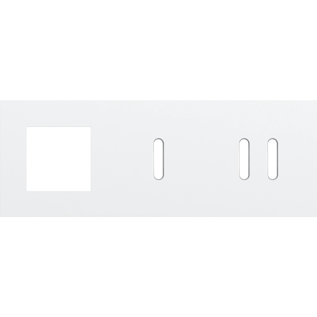 Drievoudige afdekplaat, horizontaal 71 mm centerafstand, voor één 45 x 45 mm functie, één 1-voudige en één 2-voudige schakelfunctie, Niko Rocker steel white coated.