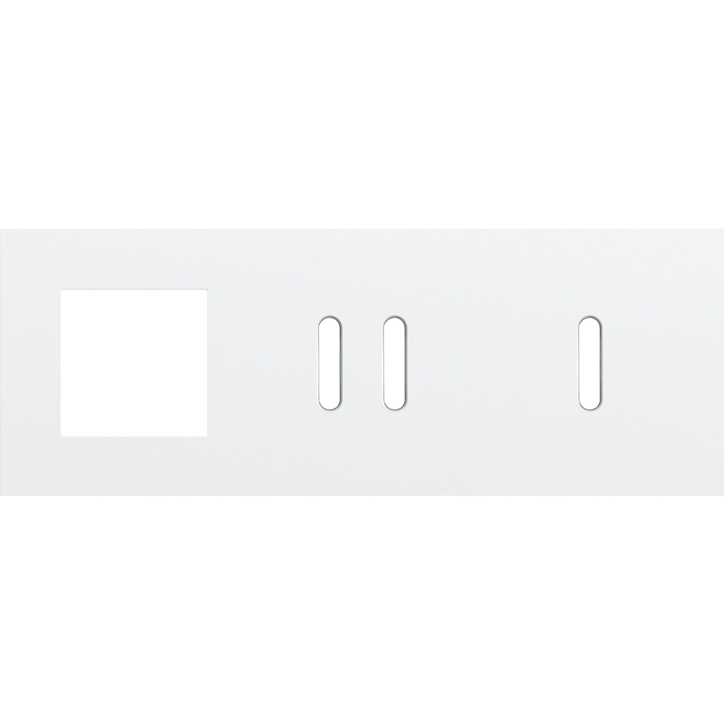 Drievoudige afdekplaat, horizontaal 71 mm centerafstand, voor één 45 x 45 mm functie, één 2-voudige en één 1-voudige schakelfunctie, Niko Rocker steel white coated.
