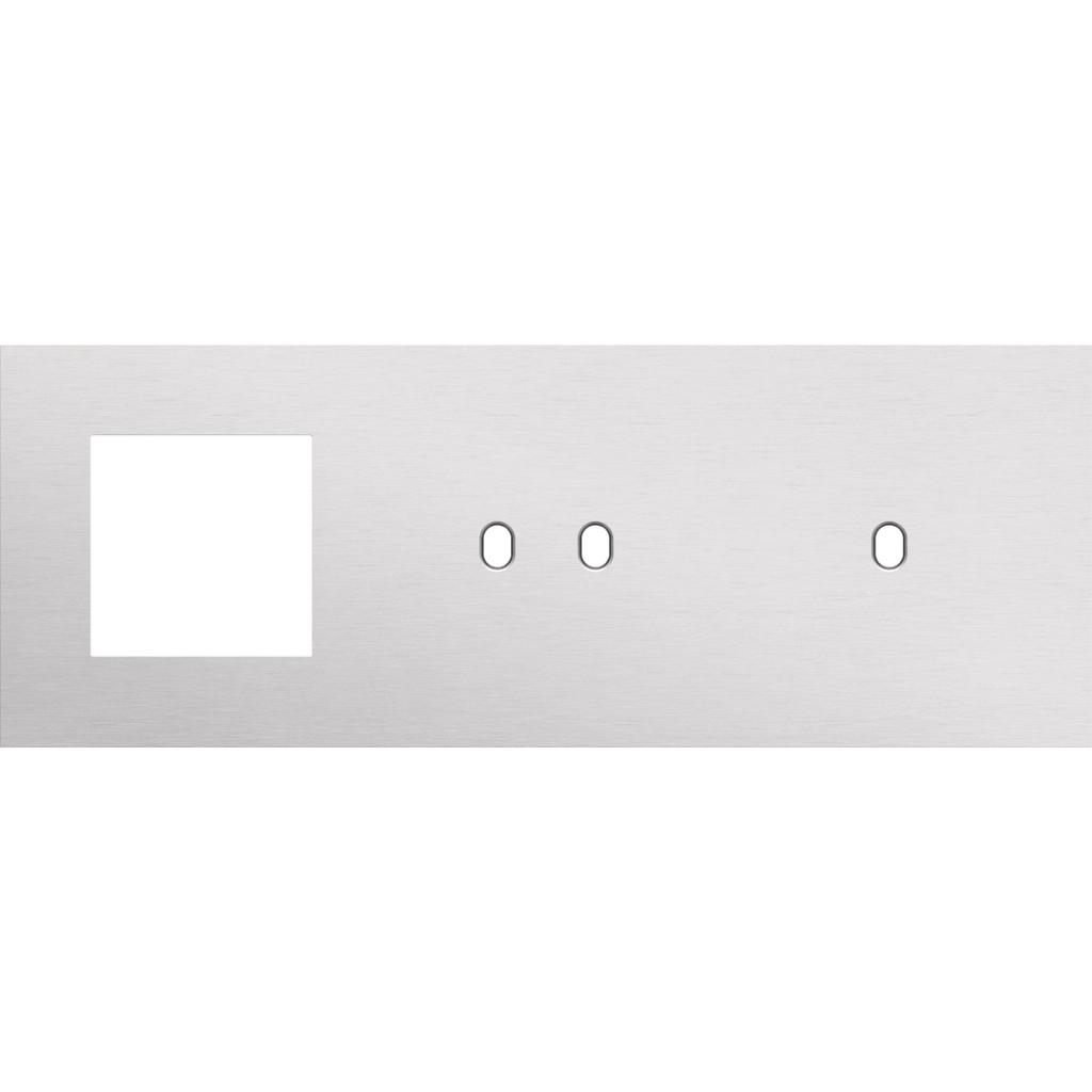 Drievoudige afdekplaat, horizontaal 71 mm centerafstand, voor één 45 x 45 mm functie, één 2-voudige en één 1-voudige schakelfunctie, Niko Toggle alu grey brushed.