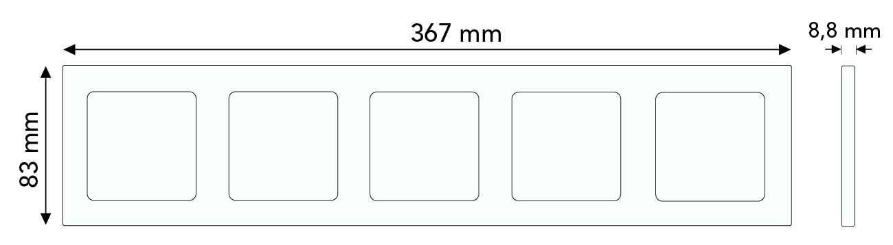 Vijfvoudig afdekraam, serie: Pure, afwerkingskleur: bamboo*. Afmetingen: 83 x 367 x 8.9 mm. Geschikt voor horizontale en verticale montage. Let op: verticale montage in België vereist meestal 60 mm centerafstand; dit afdekraam heeft 71 mm. Meer informatie »