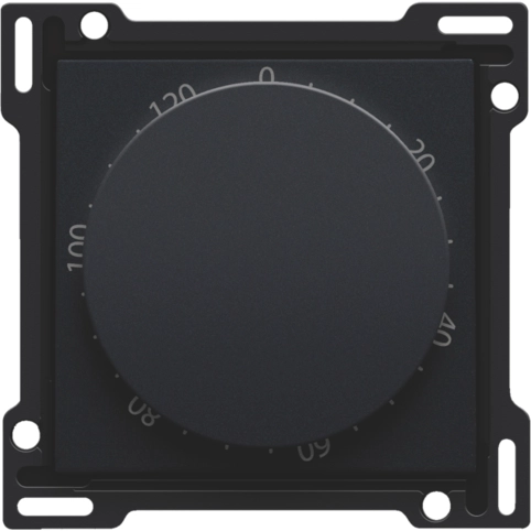 Afwerkingsset voor timer regelbaar tot 120 min., black coated. De centraalplaat (sleuf 1 x 5 mm) wordt op de tijdschakelaar vastgeschroefd. De instelknop wordt over de bedieningsas van het mechanisme bevestigd. De centraalplaat is voorzien van een tijdschaal in minuten met de tussenstanden 20, 40, 60, 80, 100 en 120 in onuitwisbare opdruk.