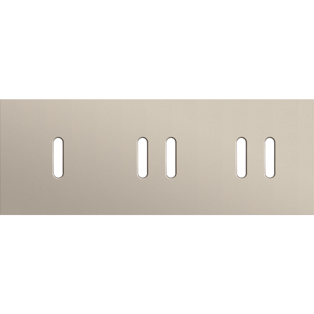 Drievoudige afdekplaat, horizontaal 71 mm centerafstand, voor één enkelvoudige en twee tweevoudige schakelfuncties, Niko Rocker steel champagne coated.