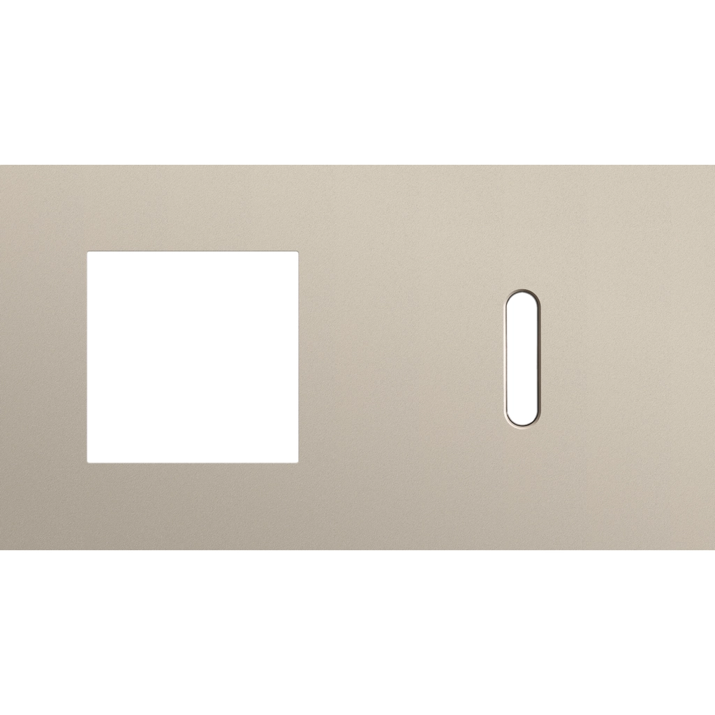 Tweevoudige afdekplaat, horizontaal 71 mm centerafstand,voor één 45 x 45 mm functie en één enkelvoudige schakelfunctie, Niko Rocker steel champagne coated.
