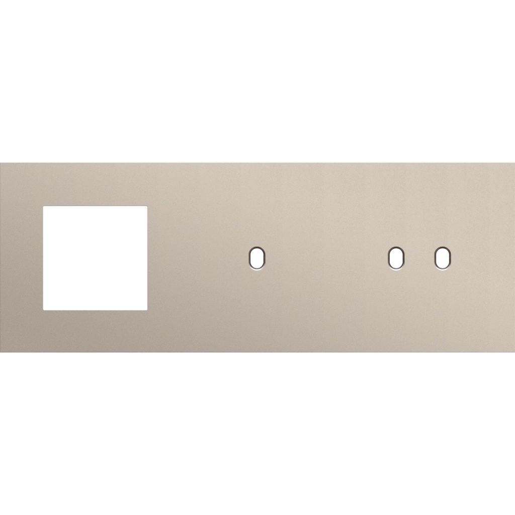 Drievoudige afdekplaat, horizontaal 71 mm centerafstand, voor één 45 x 45 mm functie, één 1-voudige en één 2-voudige schakelfunctie, Niko Togglesteel champagne coated.