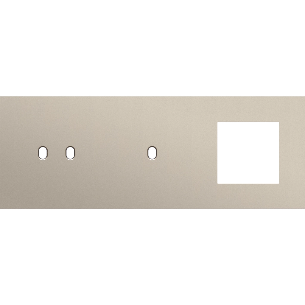 Drievoudige afdekplaat, horizontaal 71 mm centerafstand, voor één 2-voudige, één 1-voudige schakelfunctie en één 45 x 45 mm functie, Niko Toggle steel champagne coated.