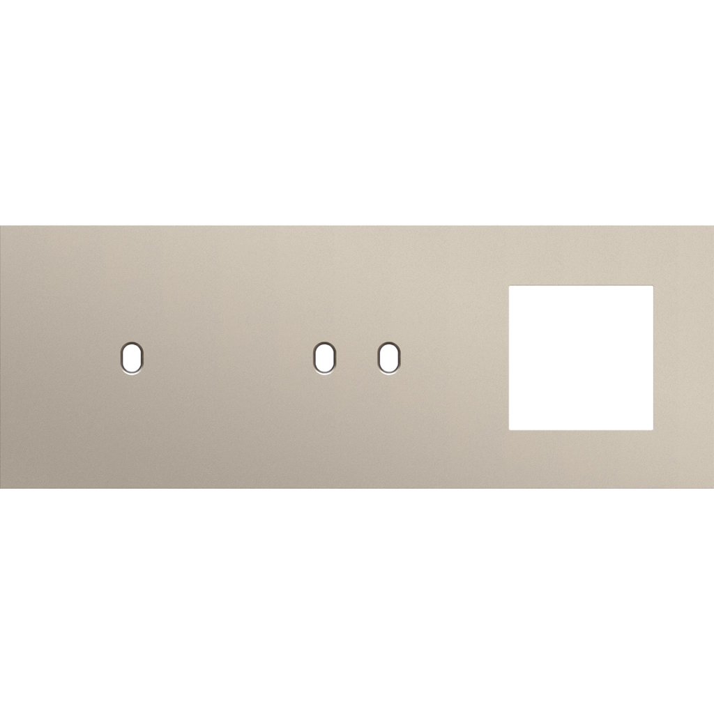 Drievoudige afdekplaat, horizontaal 71 mm centerafstand, voor één 1-voudige, één 2-voudige schakelfunctie en één 45 x 45 mm functie, Niko Toggle steel champagne coated.