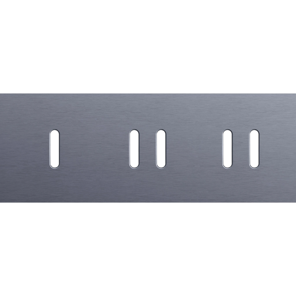 Drievoudige afdekplaat, horizontaal 71 mm centerafstand, voor één enkelvoudige en twee tweevoudige schakelfuncties, Niko Rocker alu blue grey brushed.