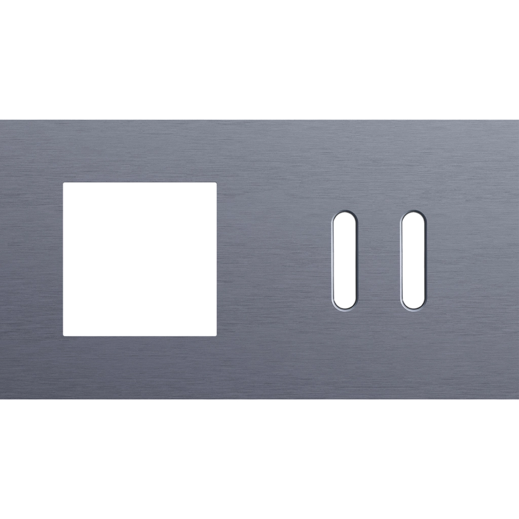 Tweevoudige afdekplaat, horizontaal 71 mm centerafstand,voor één 45 x 45 mm functie en één tweevoudige schakelfunctie, Niko Rocker alu grey brushed.