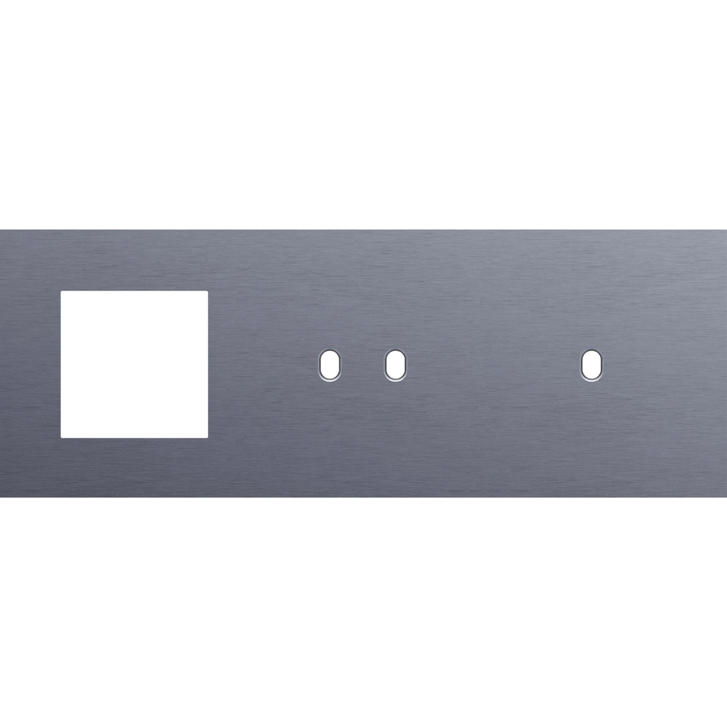 Drievoudige afdekplaat, horizontaal 71 mm centerafstand, voor één 45 x 45 mm functie, één 2-voudige en één 1-voudige schakelfunctie, Niko Toggle alu blue grey brushed.