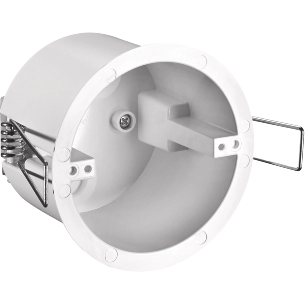 Inbouwdoos met veerklemmen voor plafondmontage van detectoren en bewegingsmelders. Geschikt voor o.a. artikelnummers: 350-20056, 350-20066, 350-20070, 350-20071, 350-41730 en 350-41734.