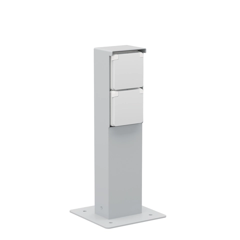Niko Hydro IP55 tuinpaal met grondplaat bevestiging en 2-voudig stopcontact, kleur grijs.