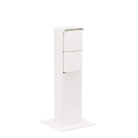 Niko Hydro IP55 tuinpaal met grondplaat bevestiging en 2-voudig stopcontact, kleur wit.