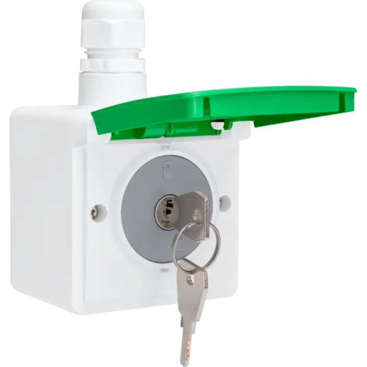Het slot is bedoeld om onbevoegd gebruik van het stopcontact te voorkomen en wordt geleverd met twee unieke sleutels. Dankzij deze gecontroleerde toegang is de wandcontactdoos bijzonder geschikt voor openbare ruimtes en gedeelde tuinen of garages.